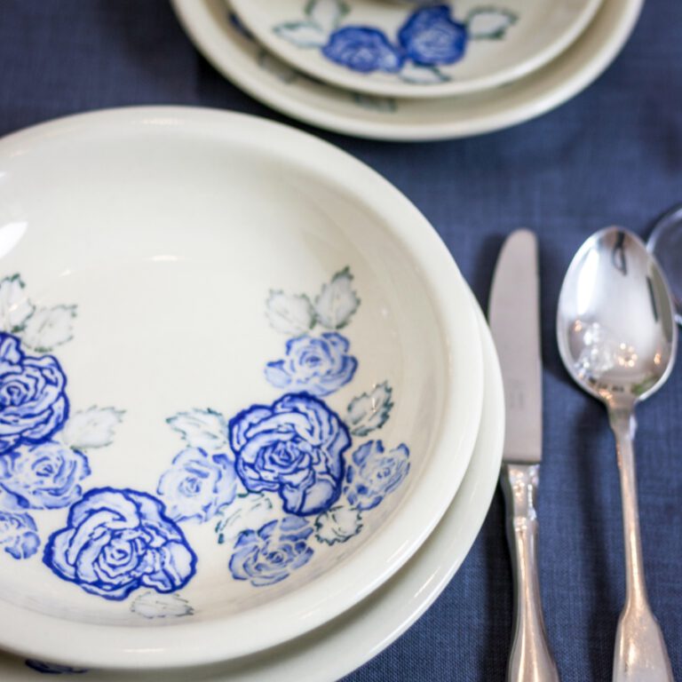 Naczynia będą towarzyszyły Wam każdego dnia na nowej drodze, którą od teraz kroczycie. Ich dekoracja nawiązuje do zdobień na sukniach panien młodych. Biały, delikatny wzór podkreśla kobaltowy kwiatek, wpisujący się w tradycję bolesławieckiej ceramiki.